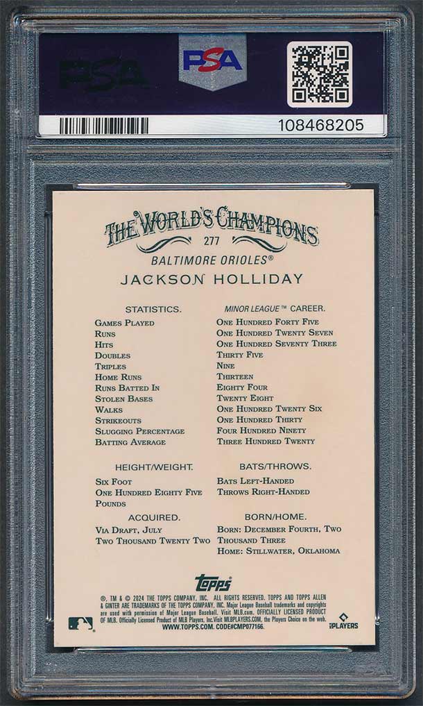 2024 Allen & Ginter Chrome Gold Refractor Jackson Holliday #277 PSA 9 MINT