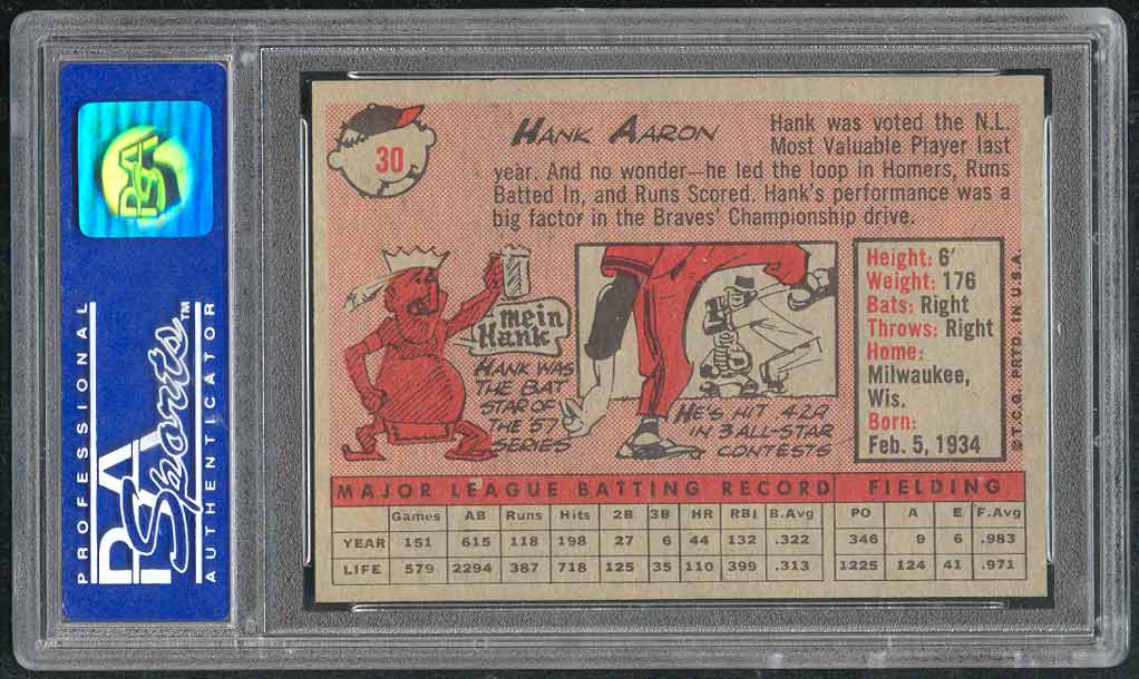 Letters Hank Aaron #30 PSA 8 NM-MT