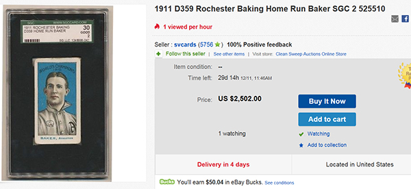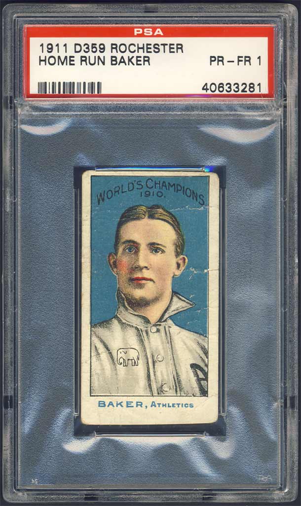 UPDATE: I had a 1911 Rochester Baking card graded PSA 1 and awhile back learned it actually pictured Cy Seymour (not Frank Baker):