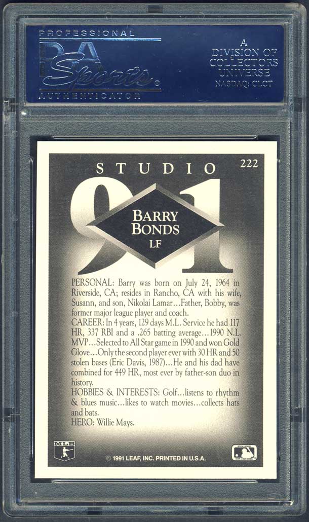 1991 Studio Barry Bonds #222 PSA 10 GEM MT