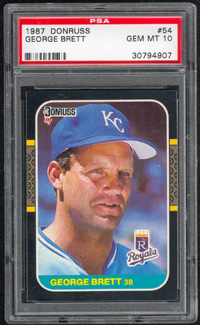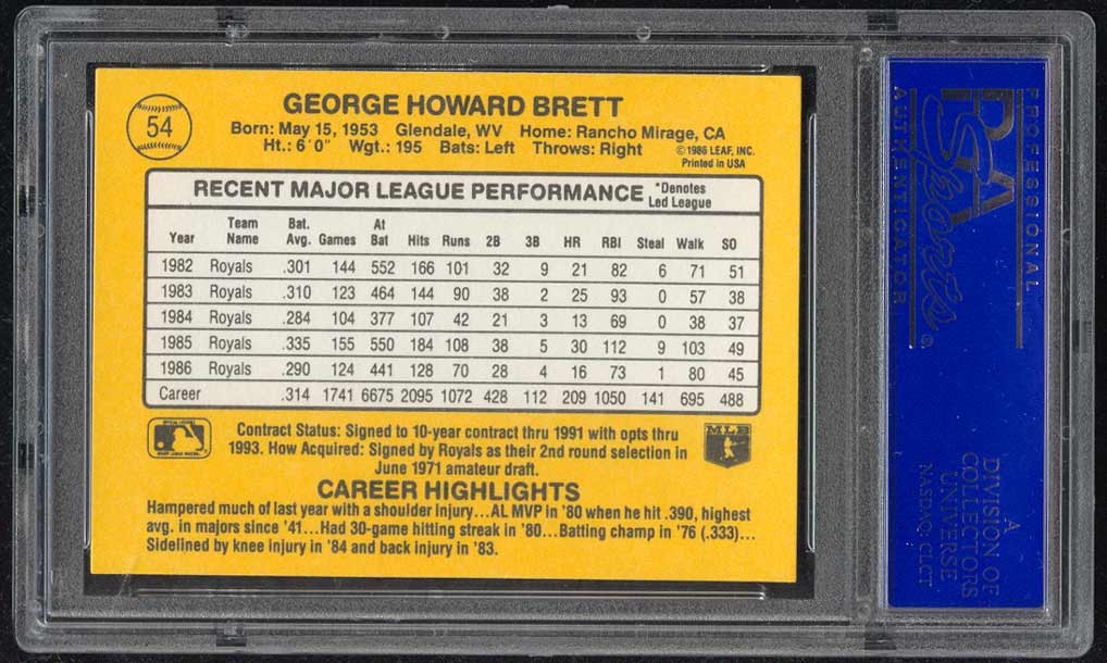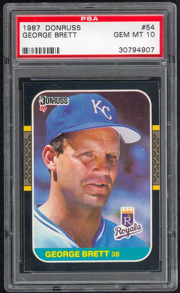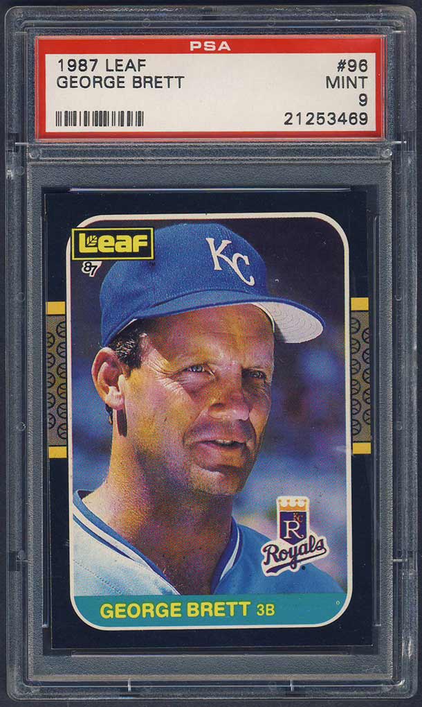 UPDATE: I have another 1987 Donruss card in my collection - Fred McGriff (a potential HOFer). I always thought I could replace the Brett with a Leaf version to give me a different type card. In June, 2015 I found a 1987 Leaf PSA 9 for cheap and picked it up. Here it is: