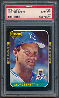 UPDATE: I had another 1987 Donruss card in my collection - Fred McGriff (a potential HOFer). I always thought I could replace the Brett with a Leaf version to give me a different type card. In June, 2015 I found a 1987 Leaf PSA 9 for cheap and picked it up. Eventually, I'd like a PSA 10.