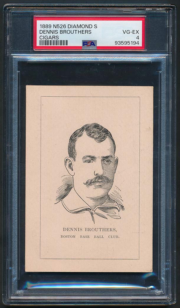 Most of these are extremely expensive or untouchable from an attainability standpoint. As I was browsing eBay the other day, a N526 Diamond S Brouthers had recently been listed with a Buy It Now price of $10,000. The asking price was approximately 4-5X the actual value of the card. At first, I hesitated sending an offer because of the large gap but changed my mind a few days later. I didn't want to miss out on the opportunity. The seller came back with a reasonable counteroffer. I proceeded to search Google for their store name/logo, found Curt, and eventually contacted him off eBay. We quickly negotiated a fair price and had a deal. Great guy to deal with! Paired with my N526 Kelly Number 7 Cigars back, I now had the other major reverse - Diamond S Cigars offered as part the N526 release. YEAH - six more cards to go to knock out the "Most Wanted List"! |
