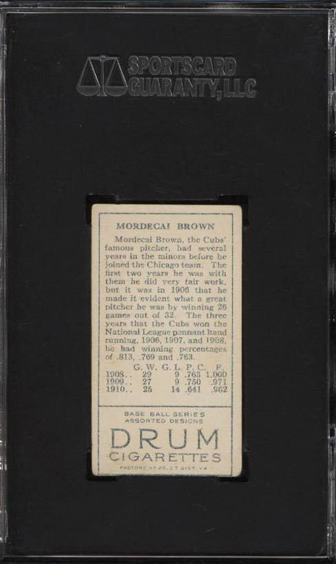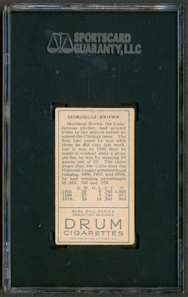 1911 T205 Drum Mordecai Brown SGC 20 FAIR