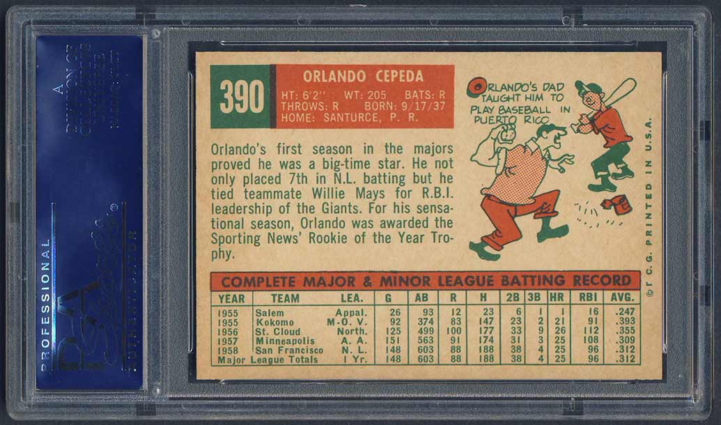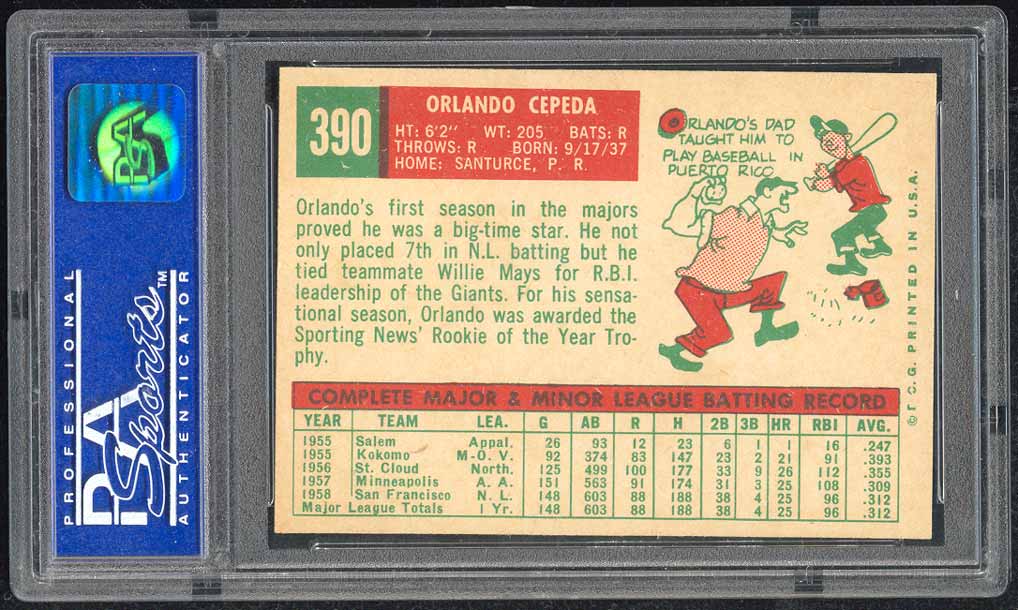 second-year card of Giant's first baseman Orlando Cepeda. Mint corners.