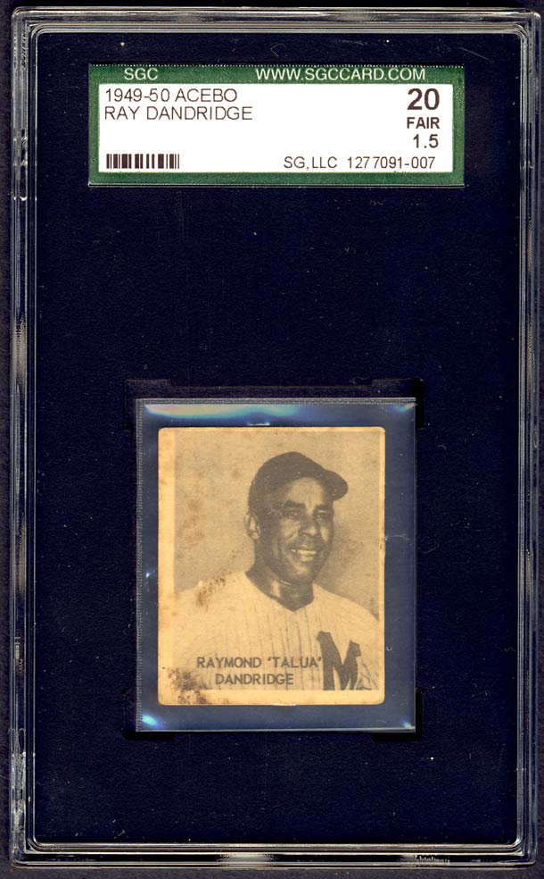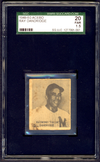 It's unclear why certain 1949-50 Acebo cards almost never surface, while others are found in nearly every small batch that's uncovered. Whatever the reason, Ray Dandridge happens to fall into the "almost never surfaces" category. This is one of the rarest cards of this Negro League legend. |