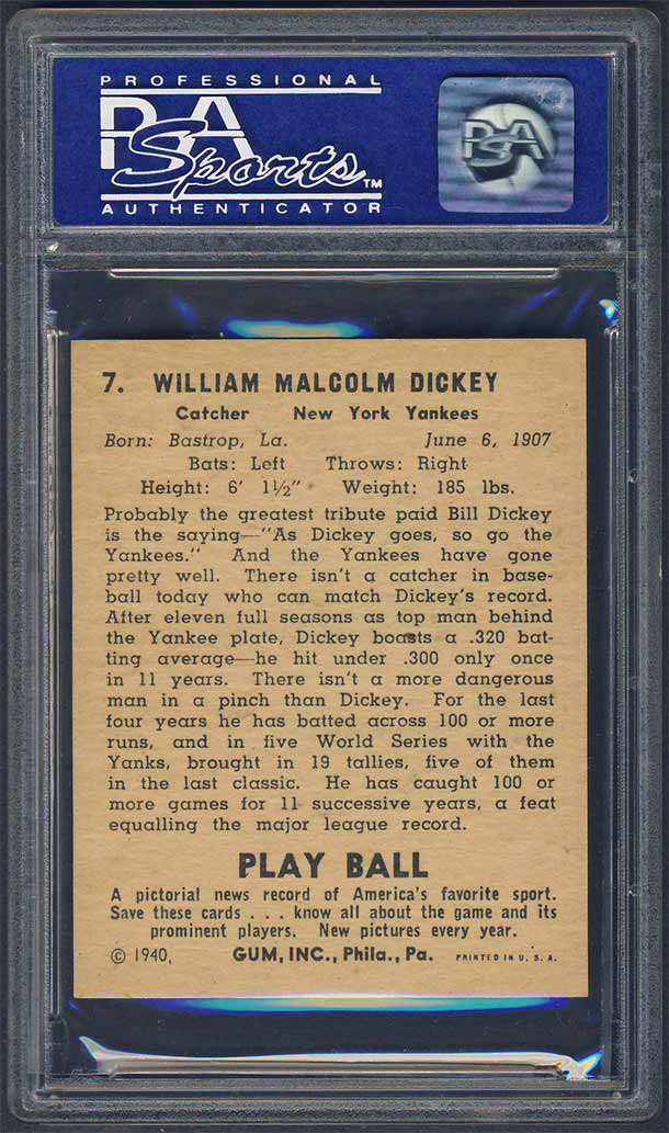 Ball Dickey and replaced it with a PSA 4 1940 Play Ball example