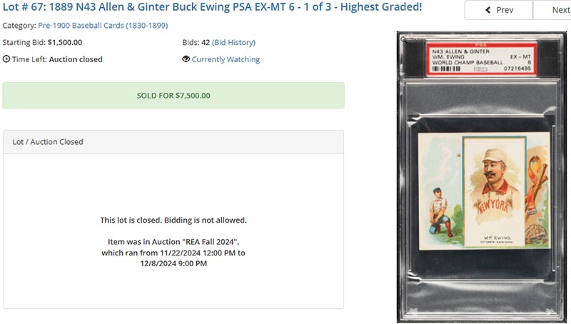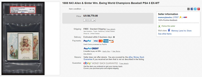 eBay in March, 2003. In February, 2009 a PSA 3 N43 card was offered