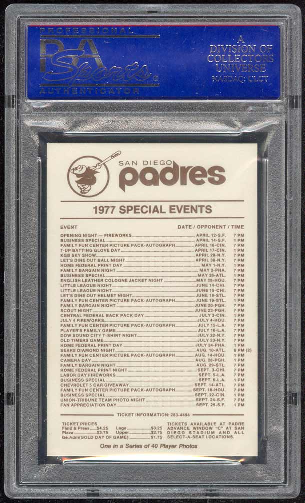 to replace the Fingers card with this 1977 Padres Schedule PSA 10