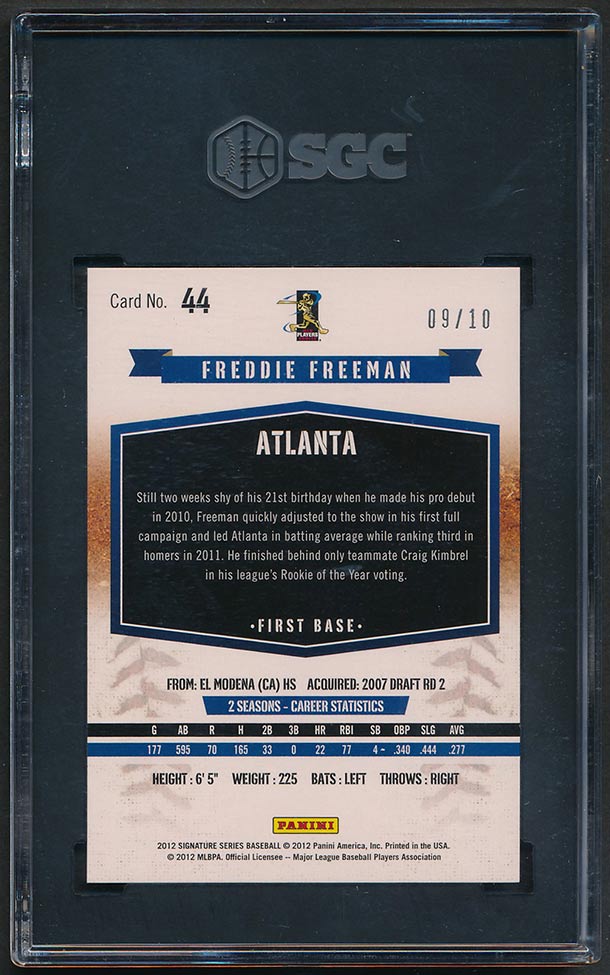 2012 Panini Signature Series Gold Proof Freddie Freeman #44 SGC 9.5 MT+