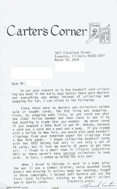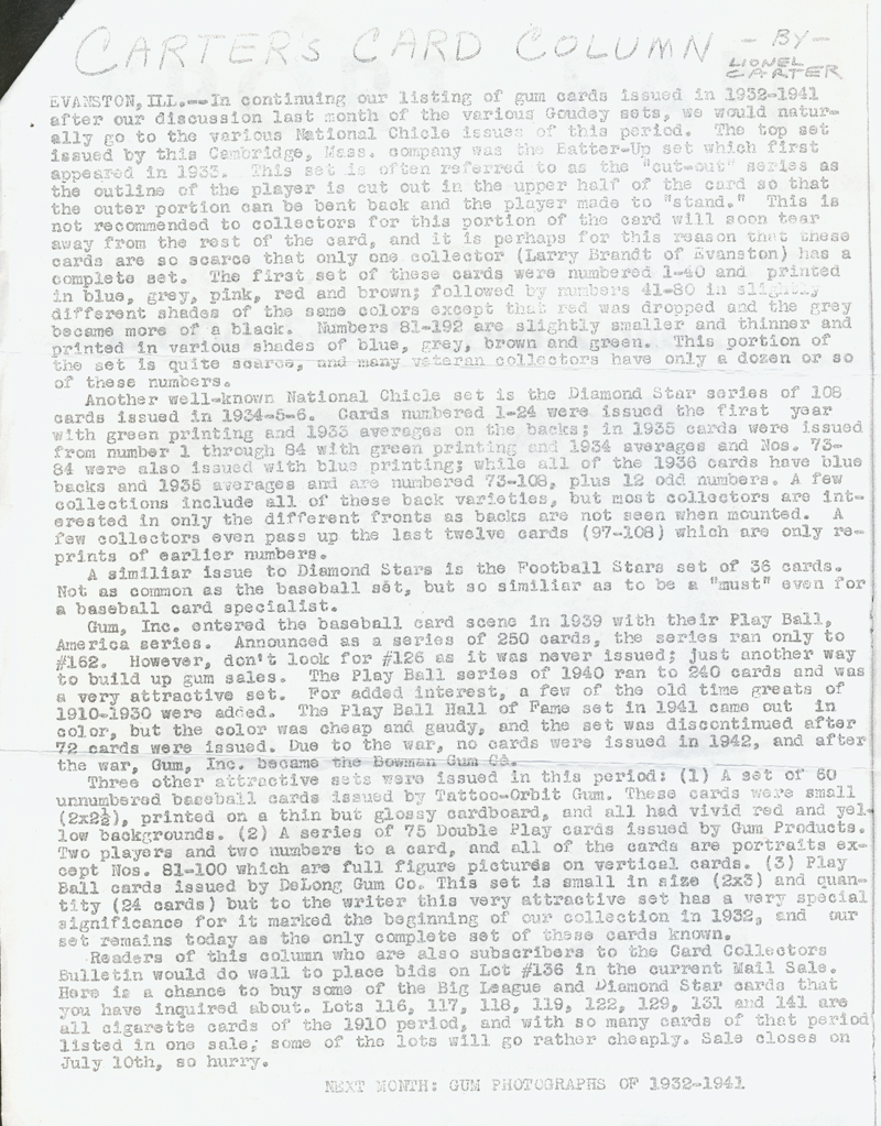 1936 Goudey set that belonged to Carter and it was pedigreed by