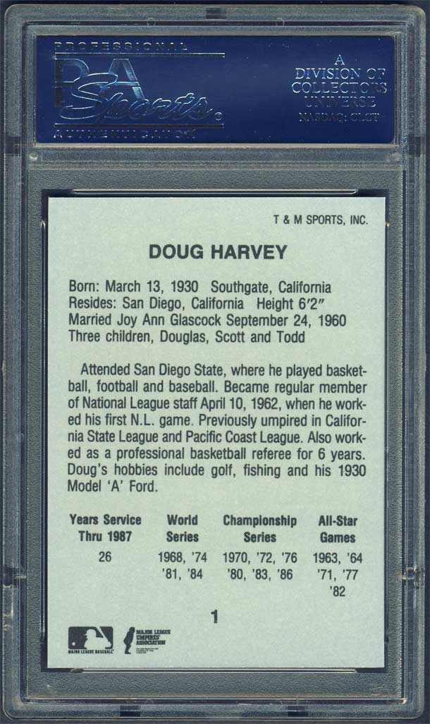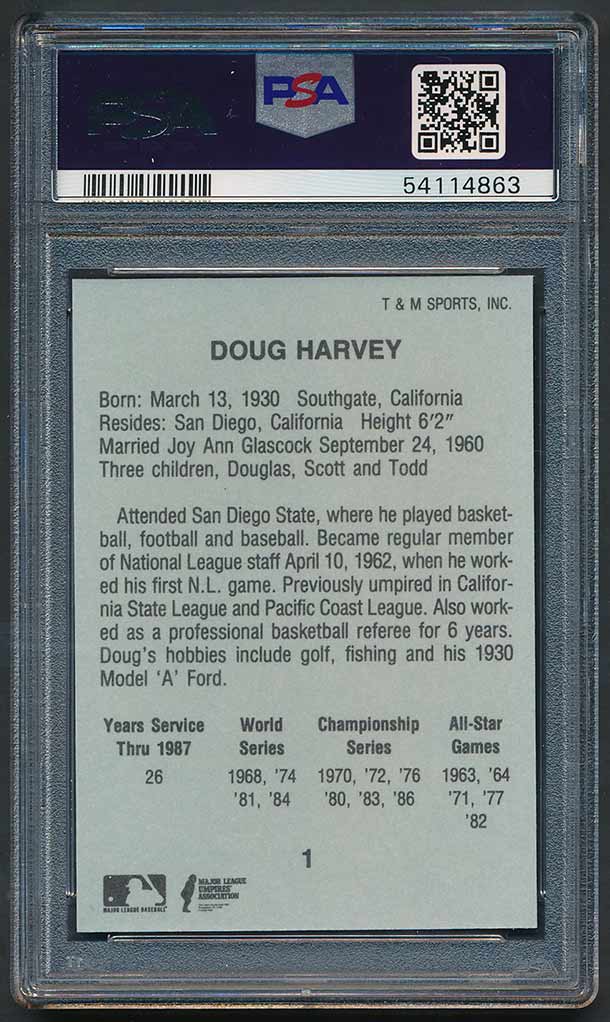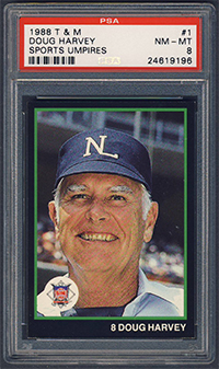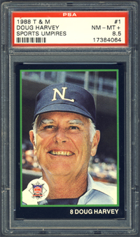 Comments: In January, 2010 I purchased two complete 1988 T&M Umpire sets on eBay for $17 inc S&H from one seller and five sets from another for $18. I picked the best Harvey singles out and set them aside for PSA submission. I received the following PSA 8.5 as a gift from a hobby friend Scott Grebenstein on June 11, 2010 - thank you Scott!