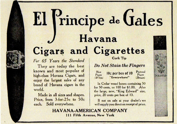 "El Principe De Gales" Cigarette ad still exhibits its original