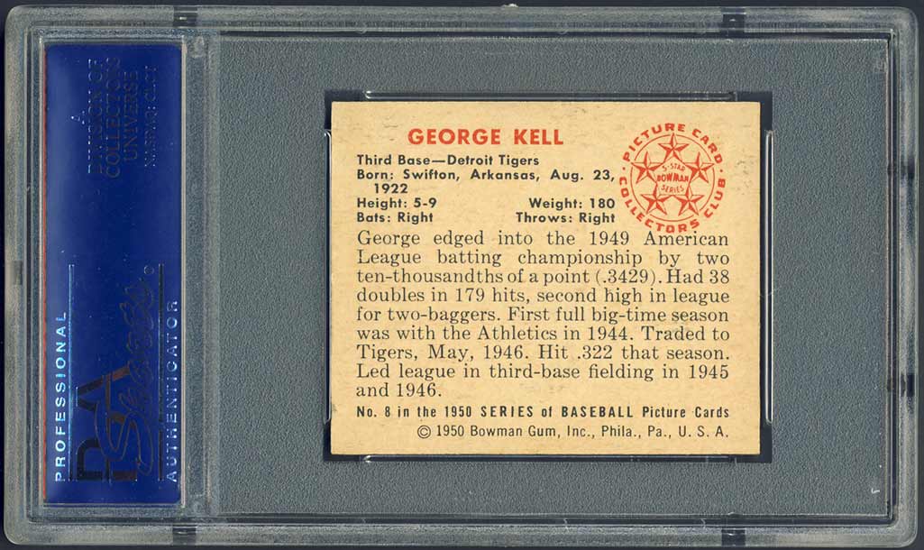 Kell PSA 8 for a 1950 Bowman PSA 7. I upgraded to this PSA 8 when