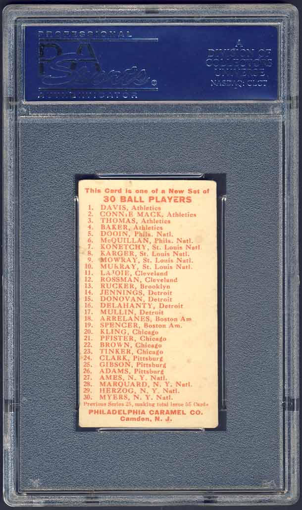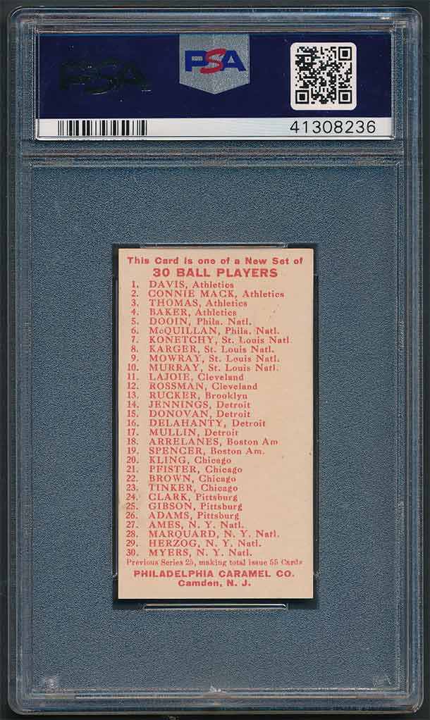 of E96, was issued in 1910 by the Philadelphia Caramel Co. as a