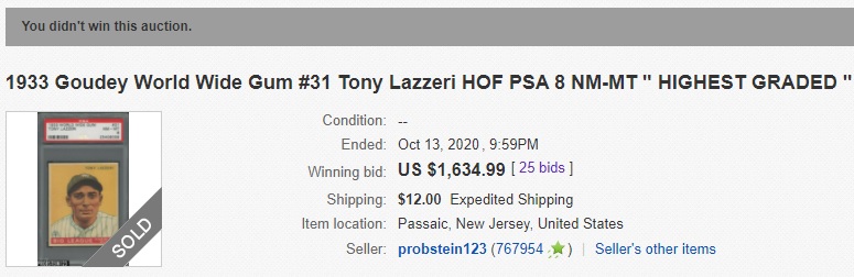 UPDATE: On October 13, 2020 I had another shot at a PSA 8 listed on eBay: