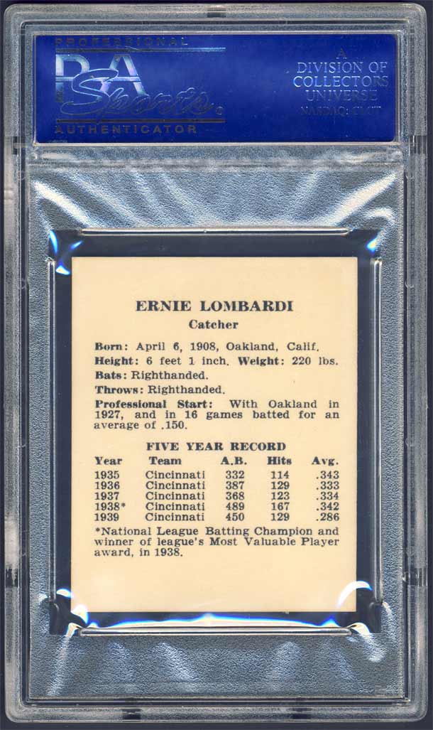 Cincinnati Reds Harry Harman Team Issue Ernie Lombardi PSA 8 NM-MT