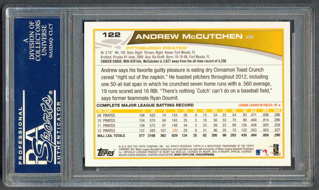 2013 Topps Sunglasses Andrew McCutchen #122 PSA 10 GEM MT