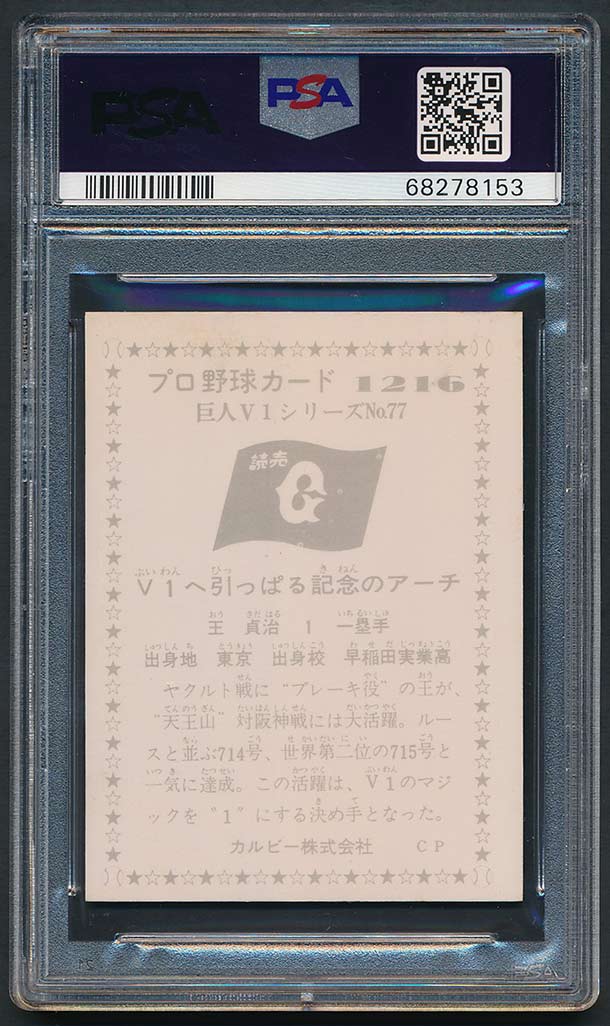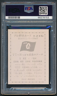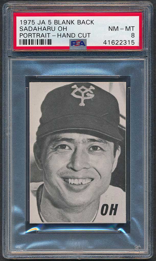 UPDATE: I usually only pick up one portrait card of each player. In February, 2023 a gorgeous PSA 9 example of a 1975/6 Calbee Oh popped up on eBay and I couldn't help clicking the "Buy It Now" option: