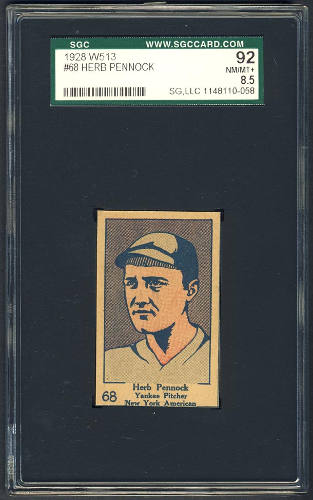 1928 W513 Herb Pennock #68 SGC 92 NM-MT+