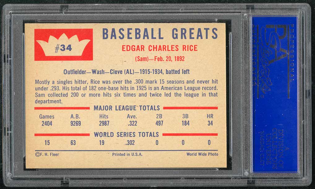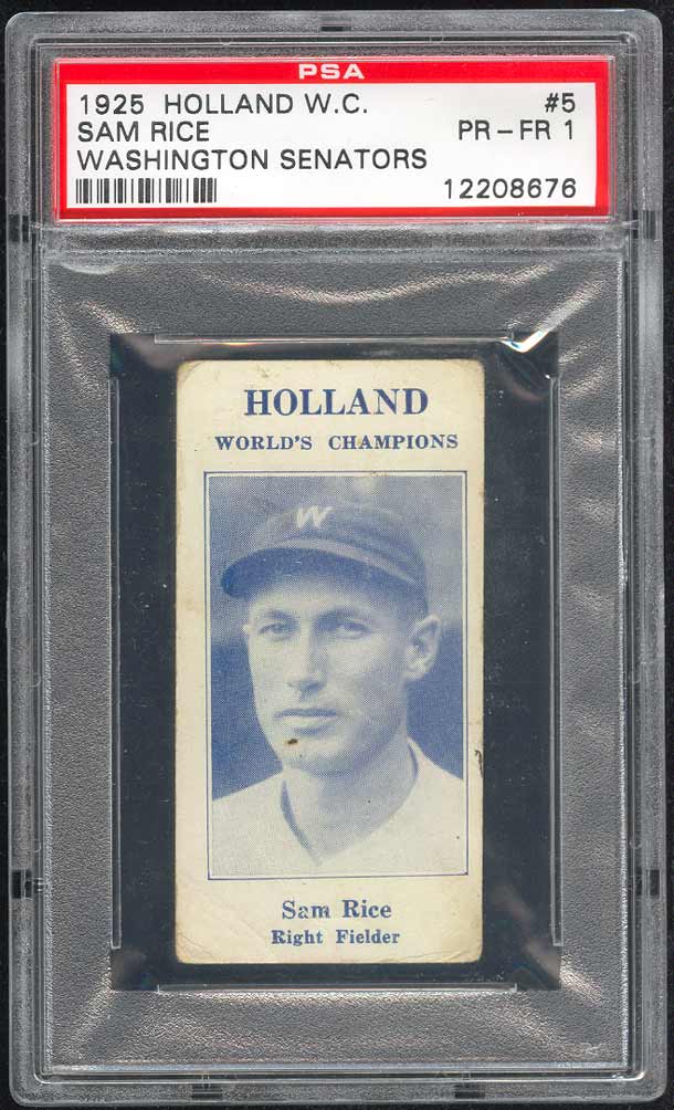 World's Champions Washington Senators Sam Rice #5 PSA 1 PR-FR