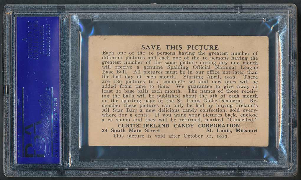 UPDATE: After years and years of searching for the elusive E123 Curtis Ireland Rixey card, an example finally showed up on eBay in 2023. The price was a little higher than I wanted to pay but it was also a matter of finances. I just didn't have the funds to make a deal. The seller would periodically lower the price and it finally reached a point where I couldn't pass up the opportunity. I tried reaching the seller off eBay but couldn't make a connection. My searches for contact information came up short until I found some information on Net54. After several attempts we finally corresponded via email and reached a reasonable price. I sent off a check and the seller sent me the card. I opened the box on the way up to mountains for a family ski trip and all of four of us (me, wife, and two kids) took turns reading the back advertisement and thinking about children turning over dozens of "pictures" in exchange for Official Spalding National League baseballs. Glad this one wasn't turned in as part of the redemption offer!