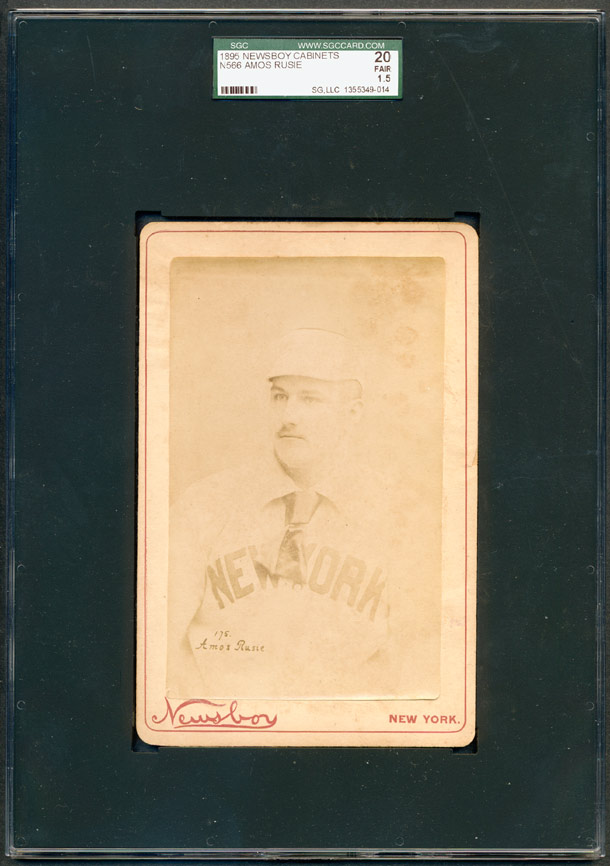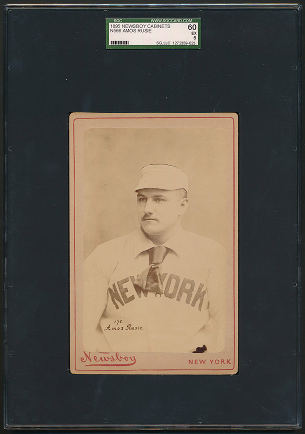 UPDATE: I wasn't overly happy with my SGC 20 example. The card was horribly faded, and it was so hard to make out Rusie's face. The edges of the photograph were barely holding on to the cardboard backing. In May 2020, a beautiful SGC 60 copy was made available in the Heritage Auctions May offering. I knew the card would end up at a higher price than I could afford at the time but I couldn't help myself. The card was gorgeous! A like example, also graded SGC 60, sold in a Robert Edward Auction for $9400 in Spring, 2009. The exact same card sold in a Legendary Auction back in August, 2011 for $7170. So, when my winning bid held up at a significantly lower price I was ecstatic. I can't wait to get this card in my hands. I just can't believe it held up it's amazing condition over the course of 125+ years. I'll continue to take good care of it as the new owner.