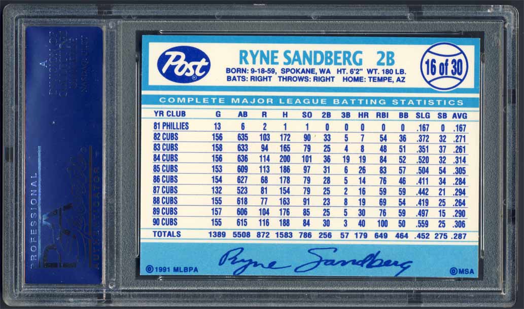 In November, 2007 I replaced the cards with a 1991 Post Cereal PSA