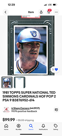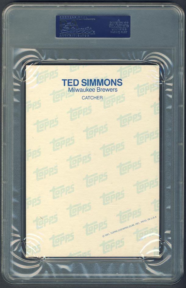 The card was submitted using the free PSA vouchers new members receive for signing up with PSA. I had purchased this raw on eBay a few months earlier. In 2020, Ted Simmons was finally elected to the Hall of Fame. Immediately, thereafter I purchased another raw example of the card on eBay for $5 in hopes of an upgrade - we'll see if it's got the potential of getting a NM or better grade (Nope, it didn't happen). I would love to upgrade this PSA 6.