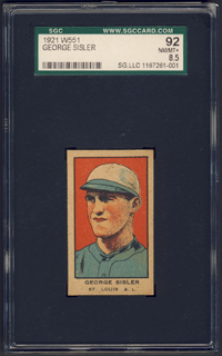 | Like Babe Ruth, Sisler's hitting was too good to be on a pitcher's schedule. He was switched to first base full-time in 1916 for the Browns and became one of the best, defensively. At bat he was simply unbelievable, hitting .407, .371, and .420 from 1920 to 1922. In 1920, "Gorgeous George" collected 257 base hits. A sinus infection that affected his vision sidelined him in 1923. He returned to play seven more seasons. |