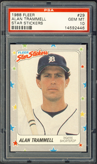 1988 Fleer Star Stickers Alan Trammell #29 PSA 10 GEM MT
