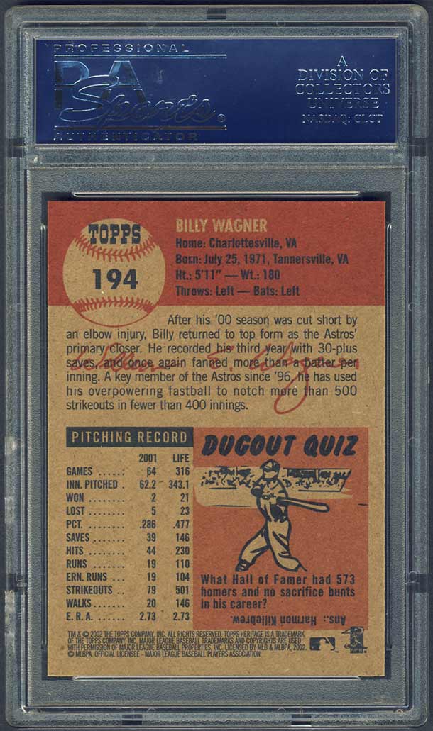 2002 Topps Heritage Billy Wagner #194 PSA 9 MINT