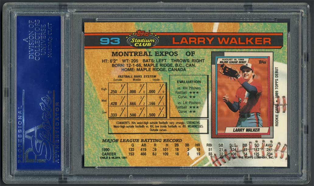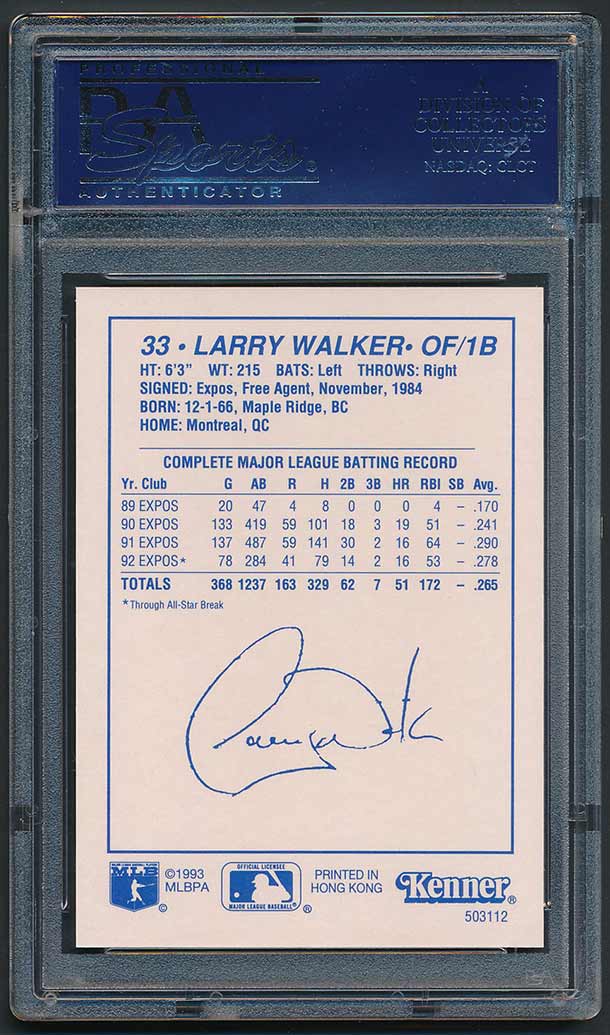 Comments: I've purchased a couple different portrait cards of the Rockies great with hopes he'd make the Hall of Fame someday. Larry Walker was inducted in 2020! The problem - both of the cards portray him in an Expos uniform. There's the 1993 Kenner Starting Lineup and this 1991 Stadium Club card: