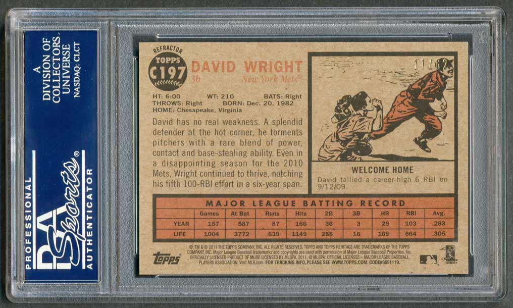 2011 Topps Heritage Chrome Black Refractor David Wright #C197 PSA 9 MINT