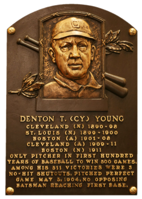 | Cy Young won 511 games, which is 94 victories more than runner-up Walter Johnson. In a career that bridged three decades and several eras of play, Cy was consistently superb. Blessed with speed, control, stamina, and just about every quality a successful pitcher needs, Young won 20 or more games 15 times, including nine seasons in a row from 1891 to 1899. He led his league in victories four times, and in ERA, winning percentage, and strikeouts twice each. Cy is also first on the complete-game list with 749 and innings pitched list with 7,355. When they decided to give an award to the season's top pitcher, they named it after Young. |