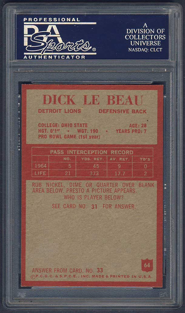 NM-MT rookie card of HOFer Dick LeBeau.