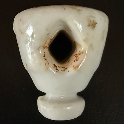 | Love the BLUE on this beauty...a new color I have not seen before on a stopper. Found it on the antique-bottles.net site....so cool. | |